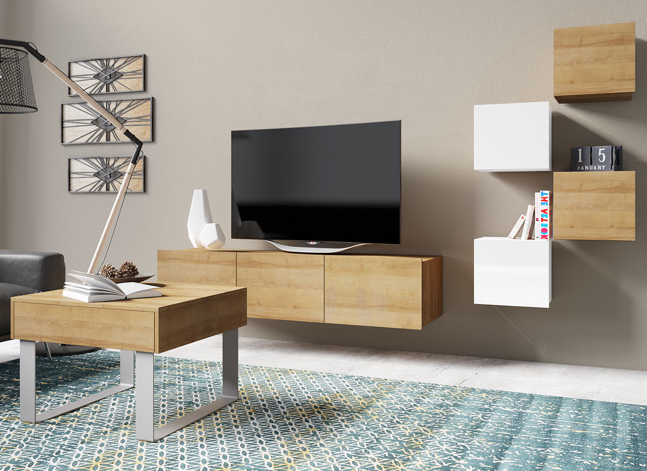 Ještě komplexnější řešení představují kompaktní obývací stěny s úložným prostorem. Ty spojují několik funkcí do jednoho celku - místo pro televizi, úložné skříňky i otevřené police pro dekorace. V malém bytě je jejich výhodou právě to, že nahrazují několik samostatných kusů nábytku a pomáhají udržet interiér sjednocený.