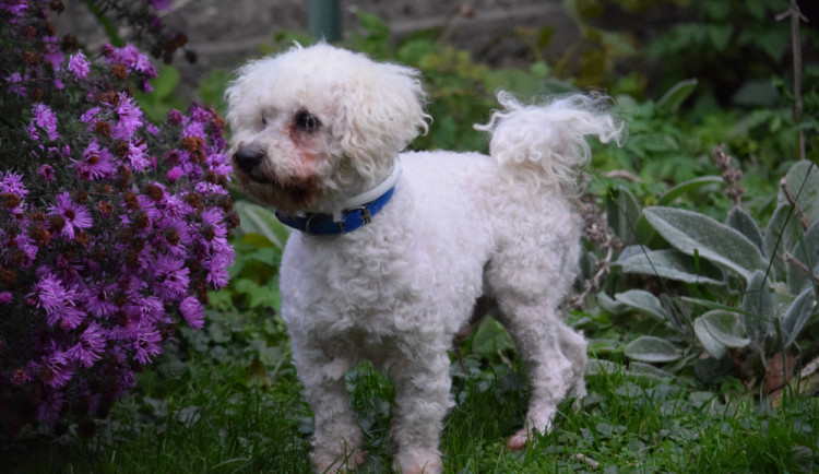 Hynek je asi jedenáctiletý psík plemene bišonek, na svůj věk je stále akční. Tedy jak kdy, někdy jej vytáhnout z pelíšku je problém.