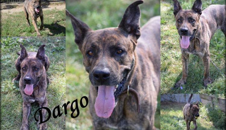 Dargo je přibližně tříletý kříženec větší velikosti. Je to hodný a veselý pes. Po příchodu do útulku byl bázlivý a vrčel, ale teď už je z něj pohodář. Je poslušný, umí základní povely. Bohužel trpí onemocněním slinivky. To jej však v ničem neomezuje, pouze se musí krmit speciálními granulemi.