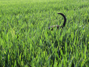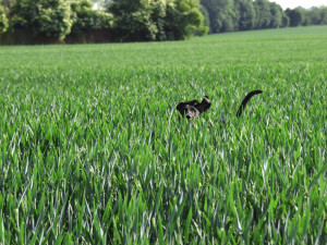 Běhat chodíme schválně tam, kde je pole s obilím nebo vysoká tráva, aby si psisko mohlo zaskákat jak delfoš v oceánu. Často u toho běžení v mladým obilí vypadá jak pacman. Jenom běží a otvírá hubu a jí všechno obilí, co se jí ocitne v hubě. Nevím, jestli jí to dělá dobře na žízeň nebo na trávení, ale prostě si dává. Špatně jí to nedělá, takže ať klidně sežere půlku pole. I když to by asi nedokázala, takže zemědělci můžou zůstat v klidu.