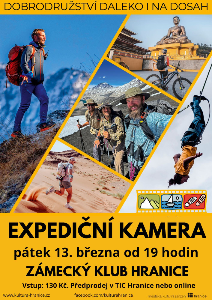 Expediční kamera je filmový festival, který k vám již od roku 2009 přináší nejlepší cestovatelské a dobrodružné filmy z mezinárodní i domácí produkce. Promítání můžete navštívit na dvoustovce míst v Česku i na Slovensku v kinosálech, kulturních domech, klubech i kavárnách. Vstupné je 130 Kč. Vstupenky zakoupíte v Turistickém informačním centru na zámku a online.