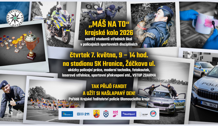 Krajské kolo soutěže MÁŠ NA TO 2026 v Hranicích, okres Přerov, ve čtvrtek 7. května 2026 na stadionu SK Hranice, na ulici Žáčkova v době od 9:00 do 14:00 hod.