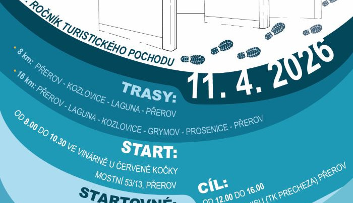 5. ročník turistické akce, trasy 6 a 16 km, start vinárna U Červené kočky, cíl V-Klub, Přerov.