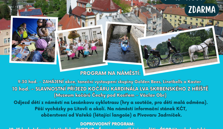 Tradičně vystoupí litovelské taneční skupiny, nebude chybět slavnostní příjezd historického kočáru Václava Obra z Muzea Kočárů v Čechách pod Kosířem, zpřístupnění památek a výstav veřejnosti zdarma, pěší vycházky po Litovli a okolí, plavby na loďkách po Nečízu, komentované prohlídky budovy radnice, Sochovy vily, tvoření pro děti v kavárně Kavka, soutěže a hry pro děti v Informačním středisku CHKO LP - Šargoun a na Lesánkově cyklotrase a spousta dalšího.