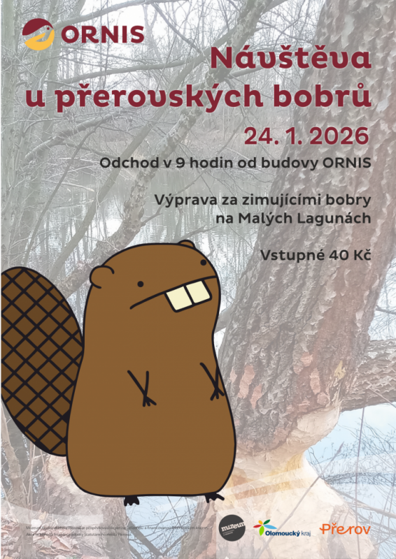 Výprava za zimujícími bobry na Malých lagunách. Odchod v 9 hodin od budovy ORNIS, Bezručova 10, Přerov. Vstupné 40 Kč.