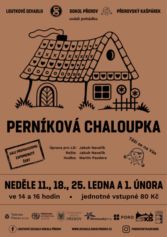 Loutkové divadlo pro děti. Vstupné 80 Kč.