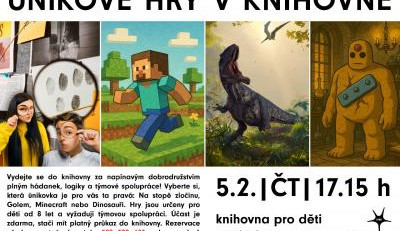 S platným průkazem do knihovny si zarezervujte místo na tel. 582 329 673 nebo osobně v knihovně na Vápenici. Určeno pro děti od 8 let. Akce a dobrodružství začíná!