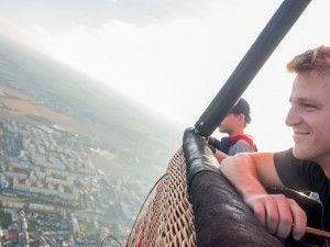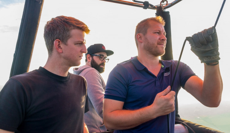 „Vítám vás v koši, vzduchoplavci. Pokud můžete, nechte starosti na zemi. Letíme rychlostí čtrnáct kilometrů v hodině kurz severo-severo západ, přátelé,“ hlásí Janko. Mám trochu strach z výšek. Není to žádná fóbie, ale úplně pohodlně se ve vzduchu prostě necítím. Už výstup na Velkou Jižní věž olomouckého Dómu pro mě byl velkou výzvou. Jenže tohle je něco docela jiného. Výšku, ve které pod sebou vidíte celé město, už skoro nejde brát jako výšku. Je to spíš bod rozhledu a tu hloubku pod vámi postupně přestanete vnímat jako nebezpečí.