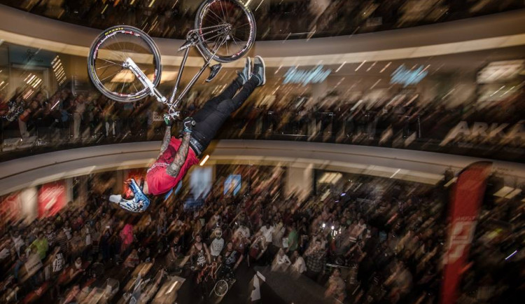 Naposledy jsi řádil při únorovém závodu Down Mall v pražském obchodním centru Arkády. Trošku jsi se potloukl, ale vy bikeři jste tvrďáci. Jak se ti skákala salta na kole v obchodáku?