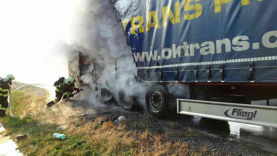 Provoz na dálnici u Olomouce zastavil požár kamionu