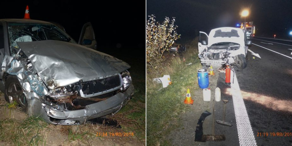 Mladý řidič Transitu nedal přednost Octavii na hlavní silnici. Při kolizi se zranilo sedm lidí