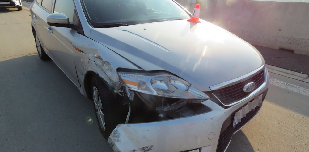 Policisté hledají svědky nehody na dálničním zúžení, kde vytlačilo nákladní auto osobák do směrových značek
