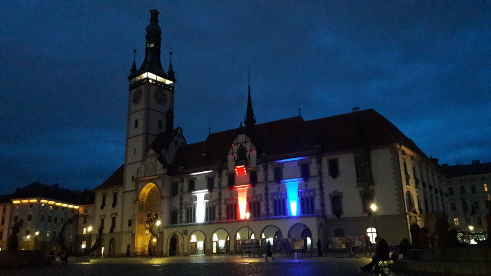Na olomoucké radnici svítí česká trikolóra, o víkendu budovu rozsvítí videomapping