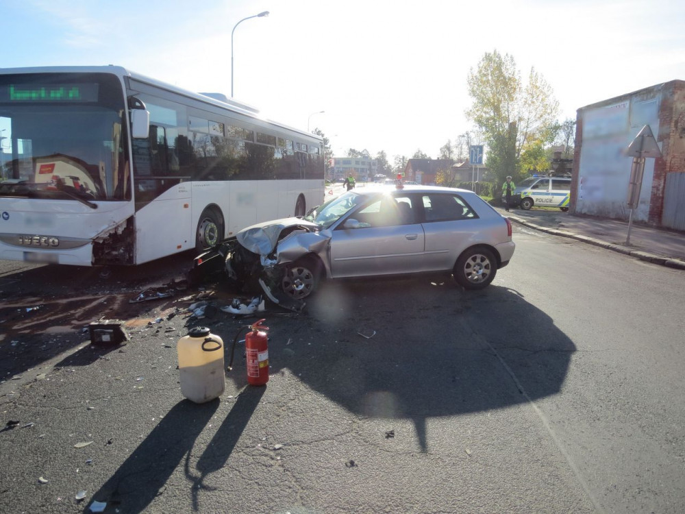 Senior byl oslněn sluncem a nedal autobusu přednost, u nehody zasahovali i hasiči