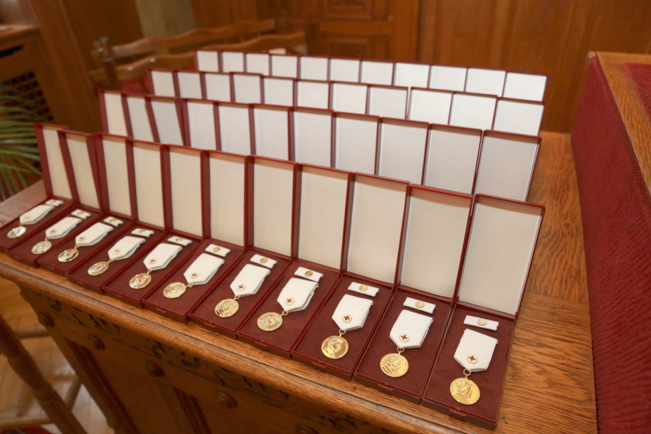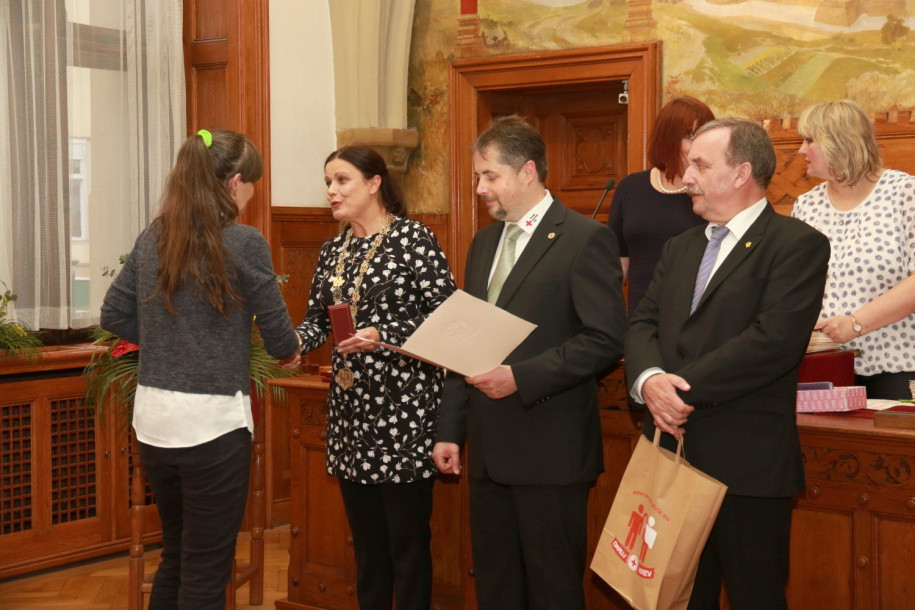 FOTO: Čtyřicet dárců krve si na olomoucké radnici převzalo zlaté medaile za čtyřicet odběrů