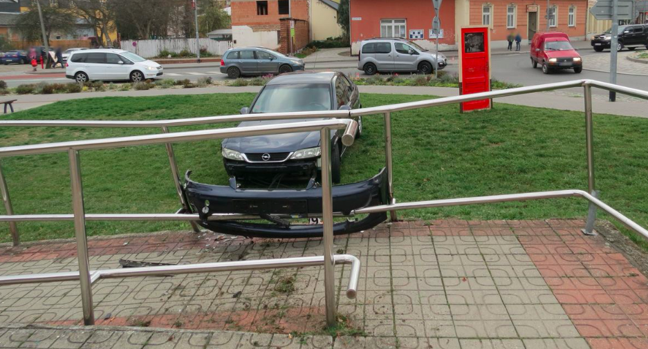 Opilá řidička nezvládla výjezd z kruhového objezdu, její auto skončilo "zakouslé" v zábradlí o několik metrů dál
