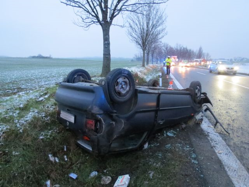 Řidička jela příliš rychle, auto po smyku skončilo na střeše. Ona i spolujezdkyně byly převezeny do nemocnice