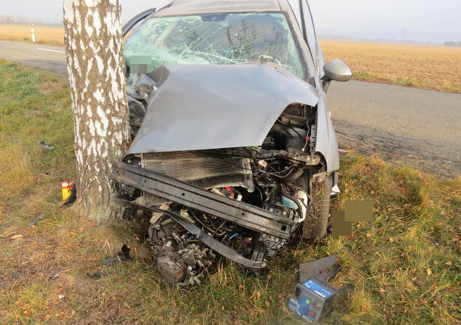 Řidič nepřizpůsobil rychlost stavu silnice, dostal smyk a narazil do stromu. Byl převezen do nemocnice