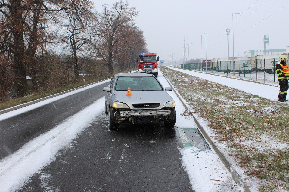 Řidička dostala na uježděném sněhu smyk a havarovala. Navrch dostala od policie pokutu