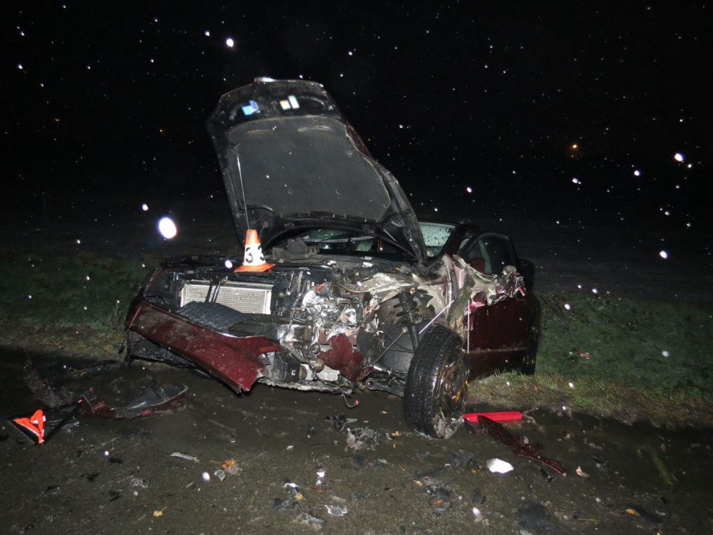 Řidič dostal na namrzlé silnici smyk, přejel do protisměru a naboural do protijedoucího auta. Oba řidiči skončili v příkopu