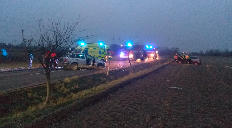 AKTUÁLNĚ: U Grygova se střetla dvě osobní auta, hasiči museli dvě osoby vyprostit