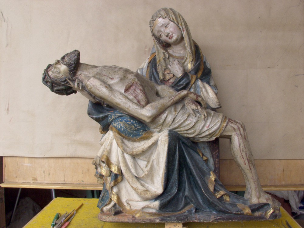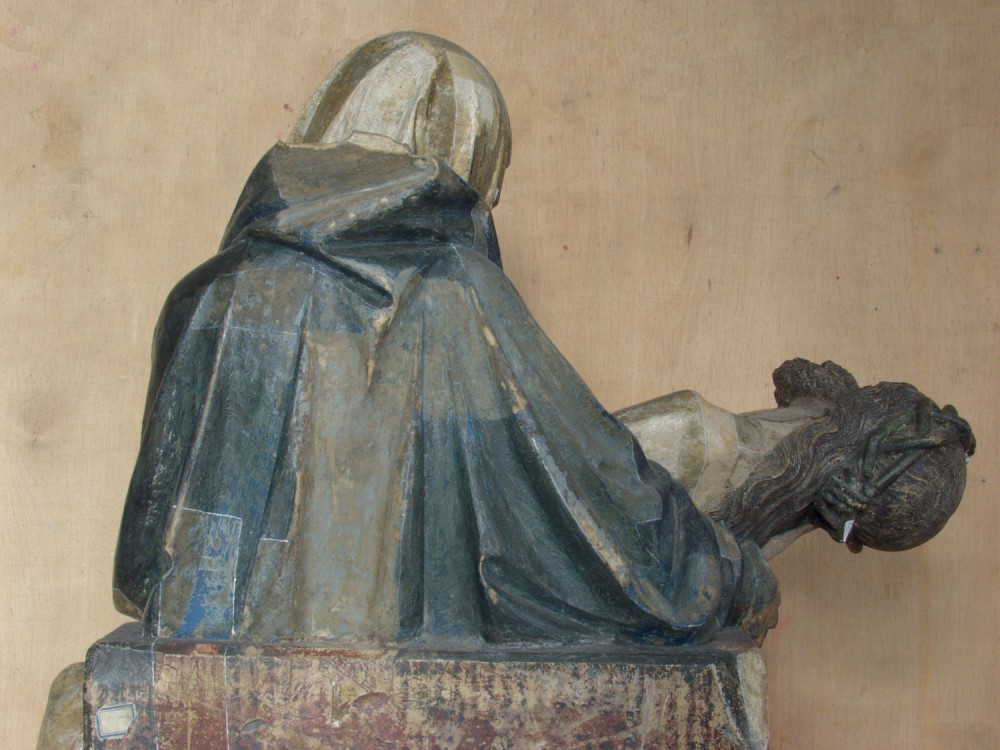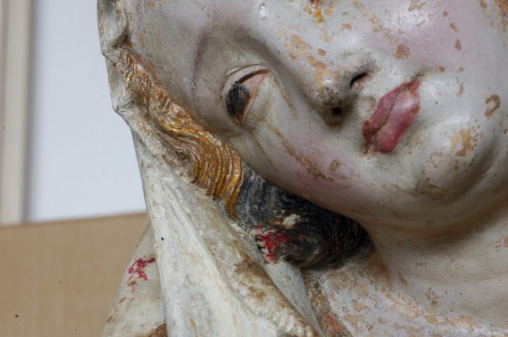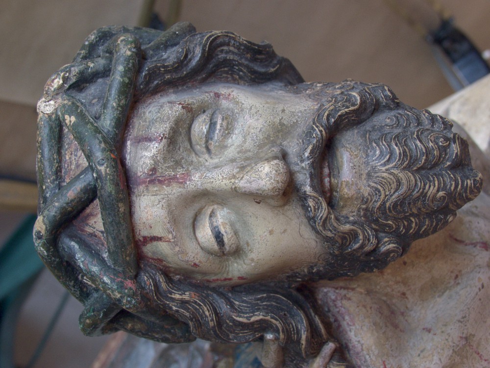 Sejmutí nečistot a retuší z poloviny Kristova obličeje, původní polychromie se stopami krve a malovanými jednotlivými vousy (2006)