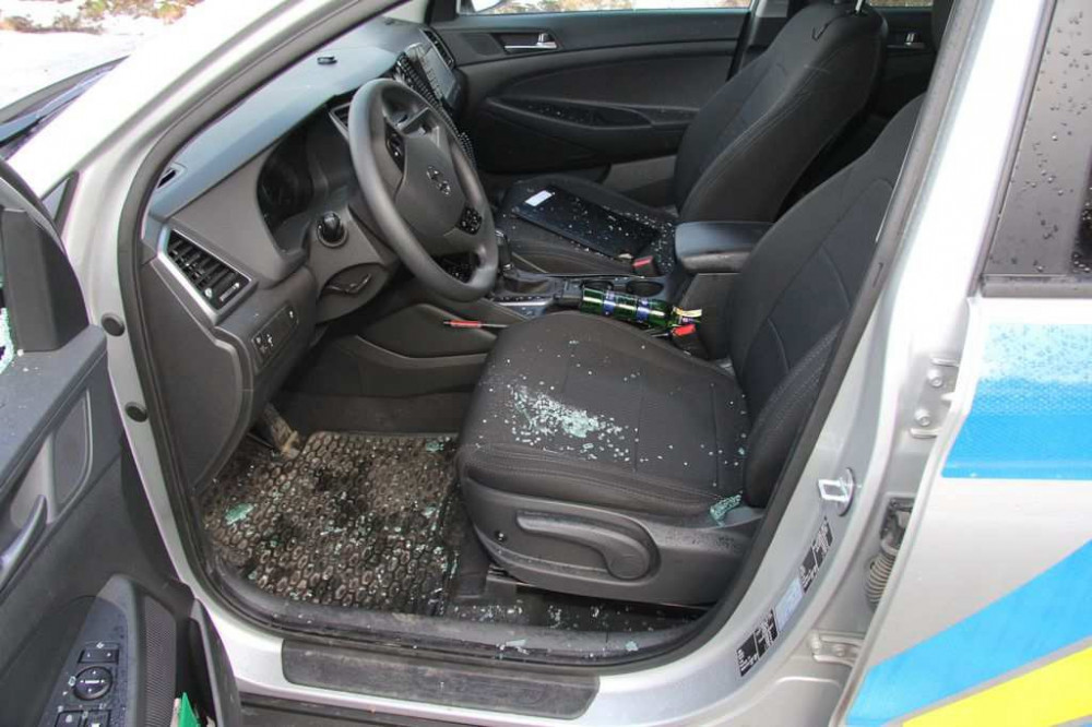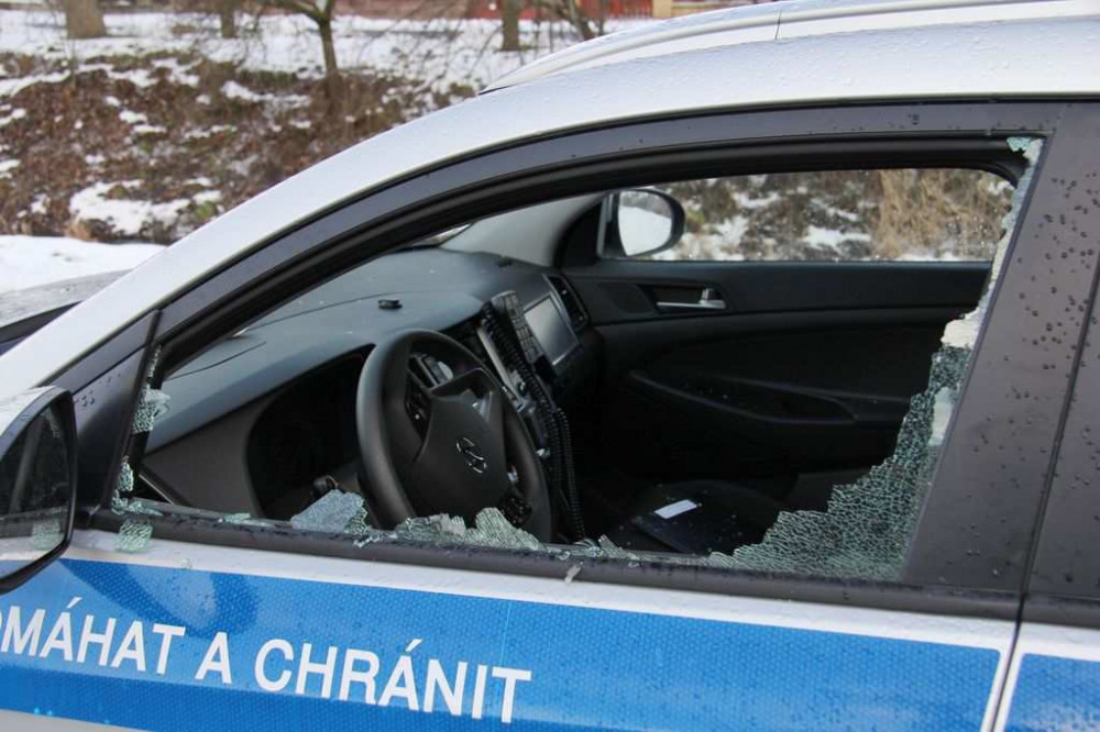 FOTO: Mladík bezdůvodně zaútočil na policistu, který seděl v autě. Na služebně pak prokopl dveře