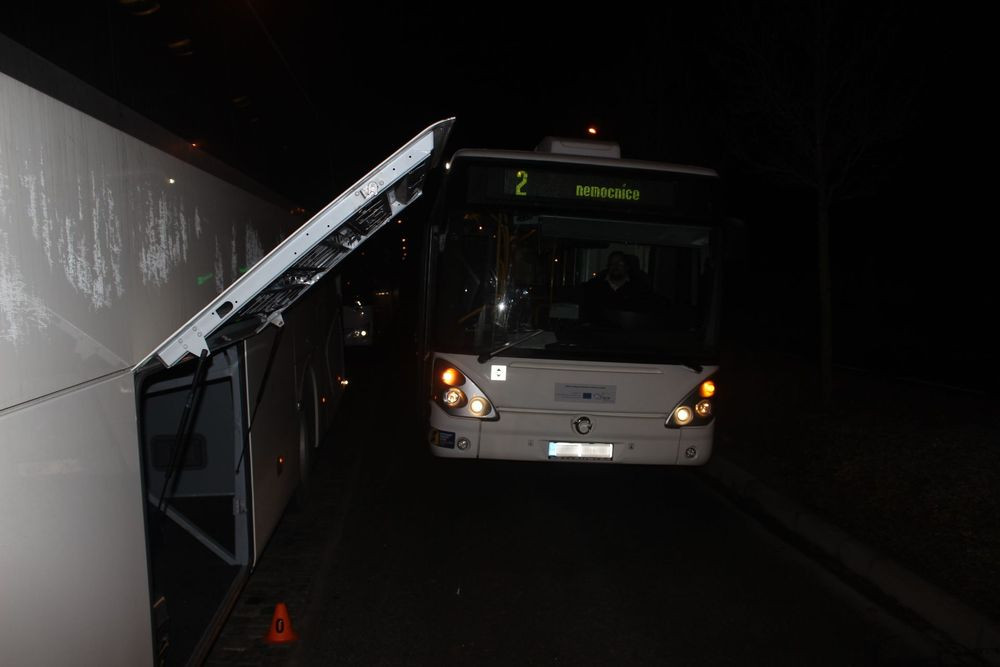Řidič narazil autobusem do dveří zavazadlového prostoru jiného autobusu. Bude se zkoumat, kdo je na vině