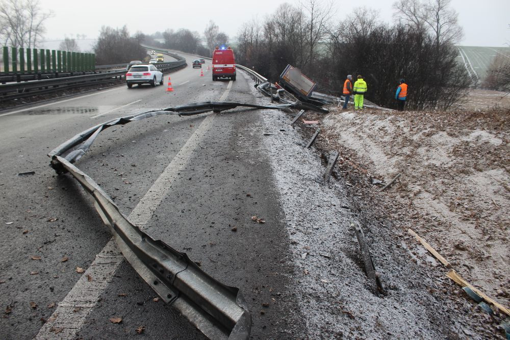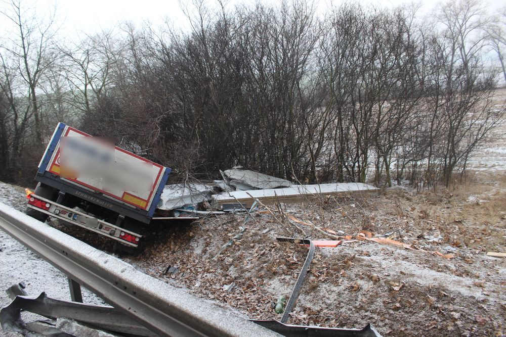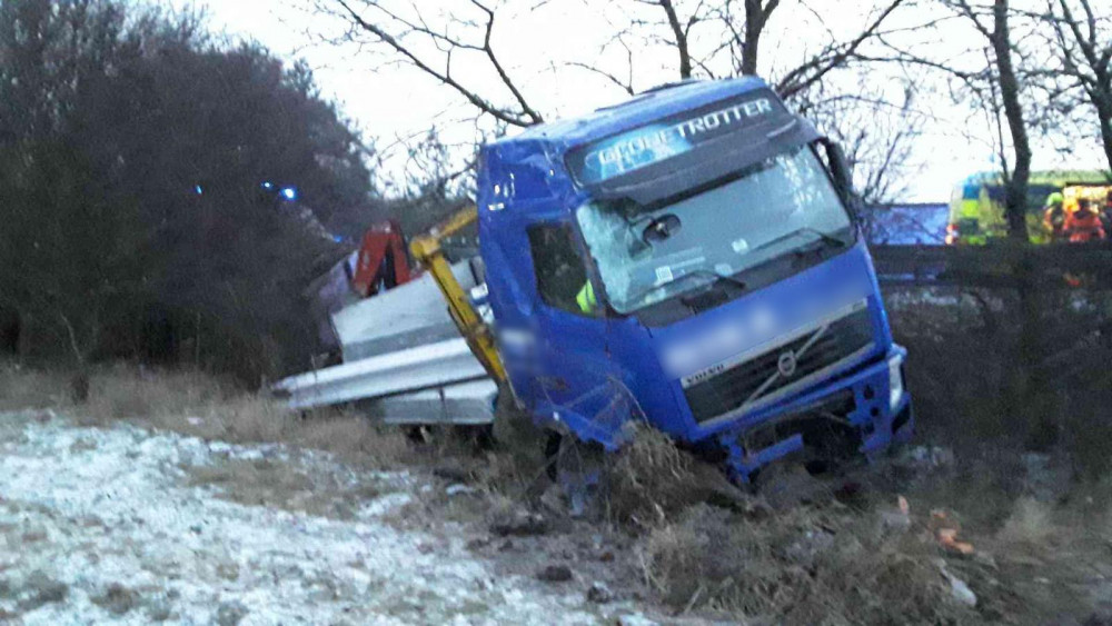 FOTO: Dálnici na Vyškov zablokoval kamion. Řidič nadýchal přes tři promile