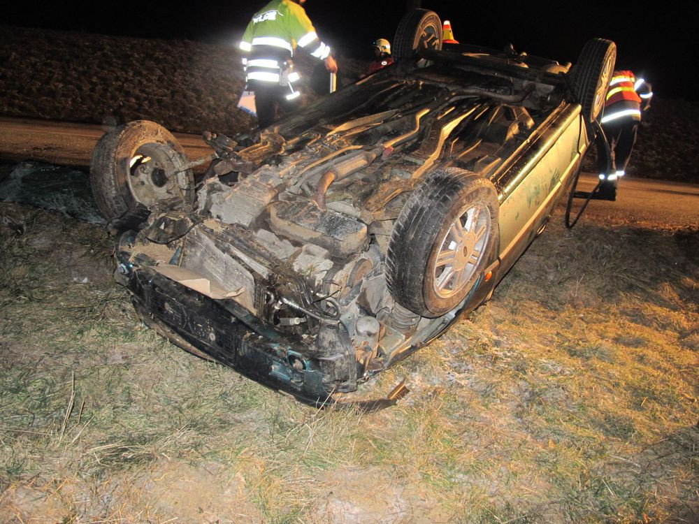 Opilá žena při nehodě otočila auto na střechu. Pití alkoholu nepřiznala a nepředložila řidičák