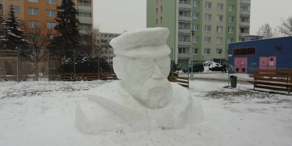 VIDEO: Nadšenci vytvořili bustu Tomáše Garrigua Masaryka ze sněhu. Dodatečně tak připomněli sté výročí Československa