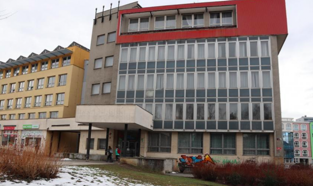 Budova, v níž se budou učit budoucí zdravotníci, původně sloužila coby Dům politické výchovy (na snímku vpravo). Krček, který je dnes již zaslepený, vedl do budovy, která byla sídlem KSČ. Dnes v tomto objektu sídlí poliklinika (na snímku vlevo)