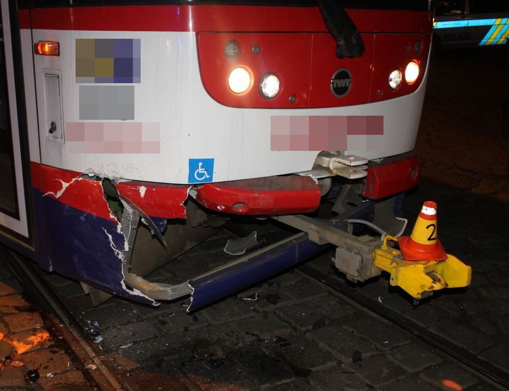 Opilá řidička nabourala do tramvaje u Metropolu. Nadýchala téměř dvě promile a přišla o řidičák