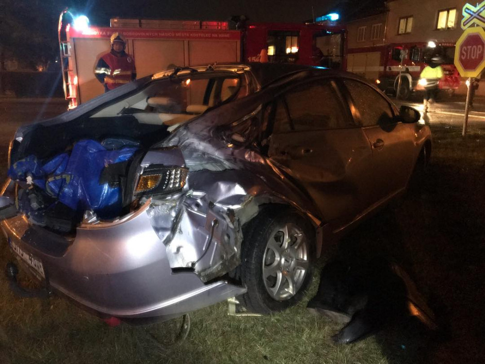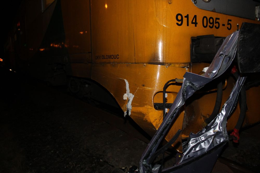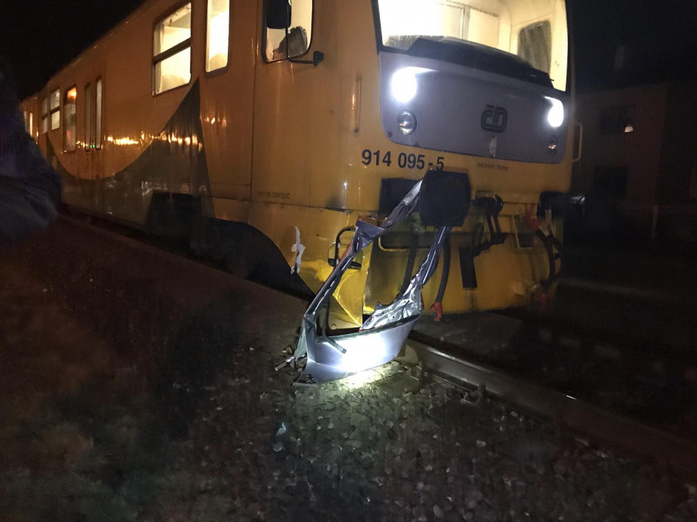 FOTO: Řidička vjela na nechráněný přejezd před projíždějící vlak. Skončila v nemocnici