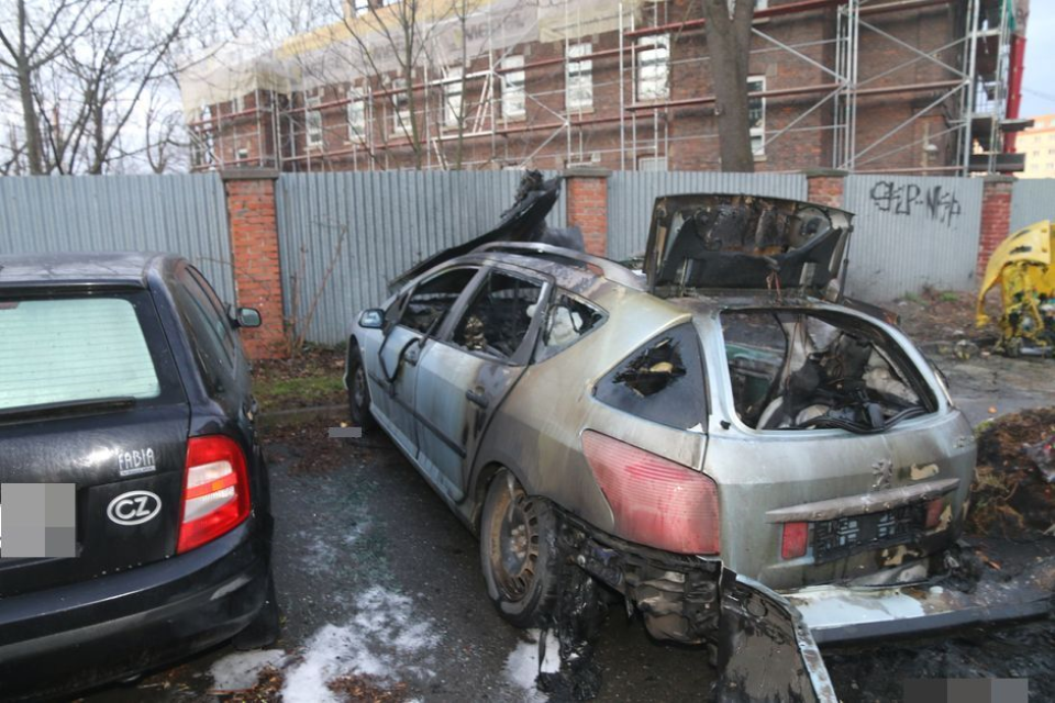 FOTO: V Olomouci hořely kontejnery. Oheň se rozšířil i na zaparkovaná auta