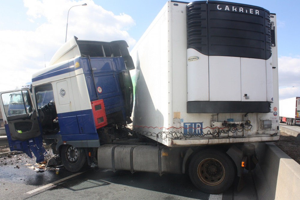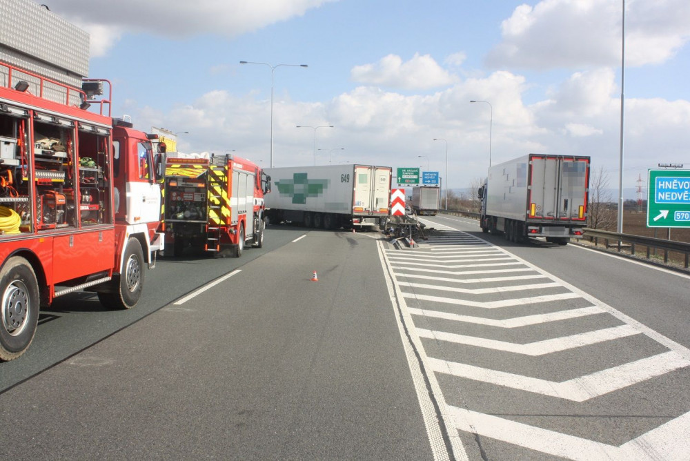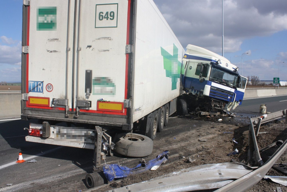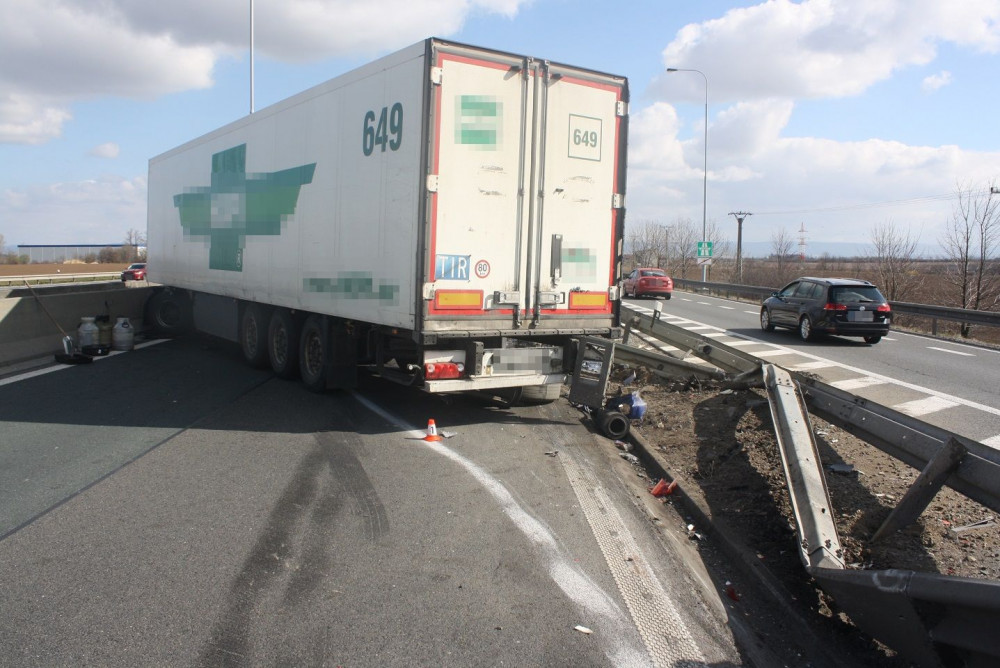 FOTO: Kamion s prasklým kolem blokoval dálnici na Olomouc přes čtyři hodiny
