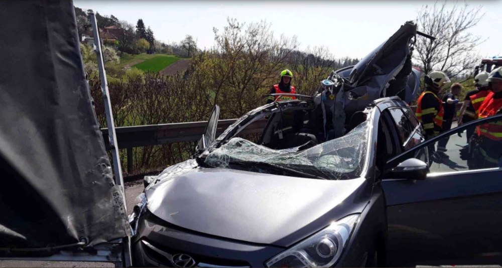 Na dálnici D46 došlo k dopravní nehodě tří osobních aut a náklaďáku, jedna osoba byla zraněna