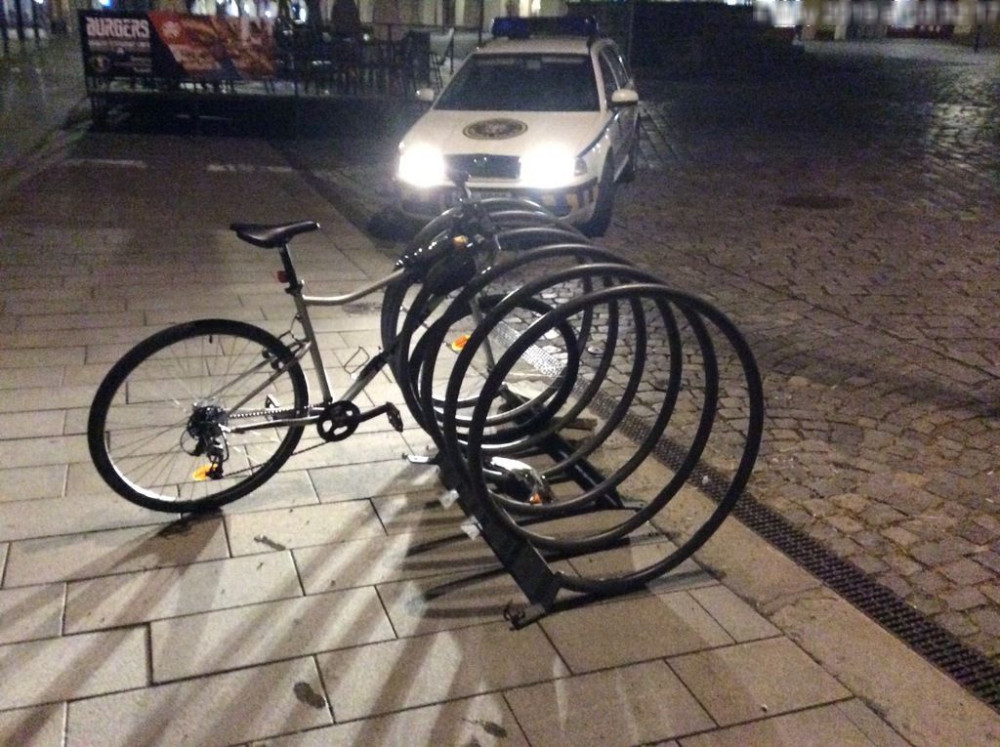 Muž zakopl o stojan na kola na Dolním náměstí. Rozhodl se ho odtáhnout pryč