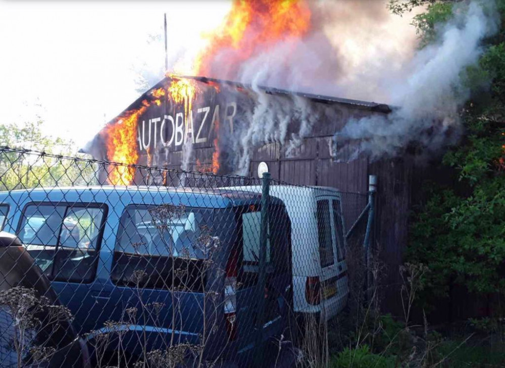 V Šumperku vyhořela dřevěná budova autobazaru