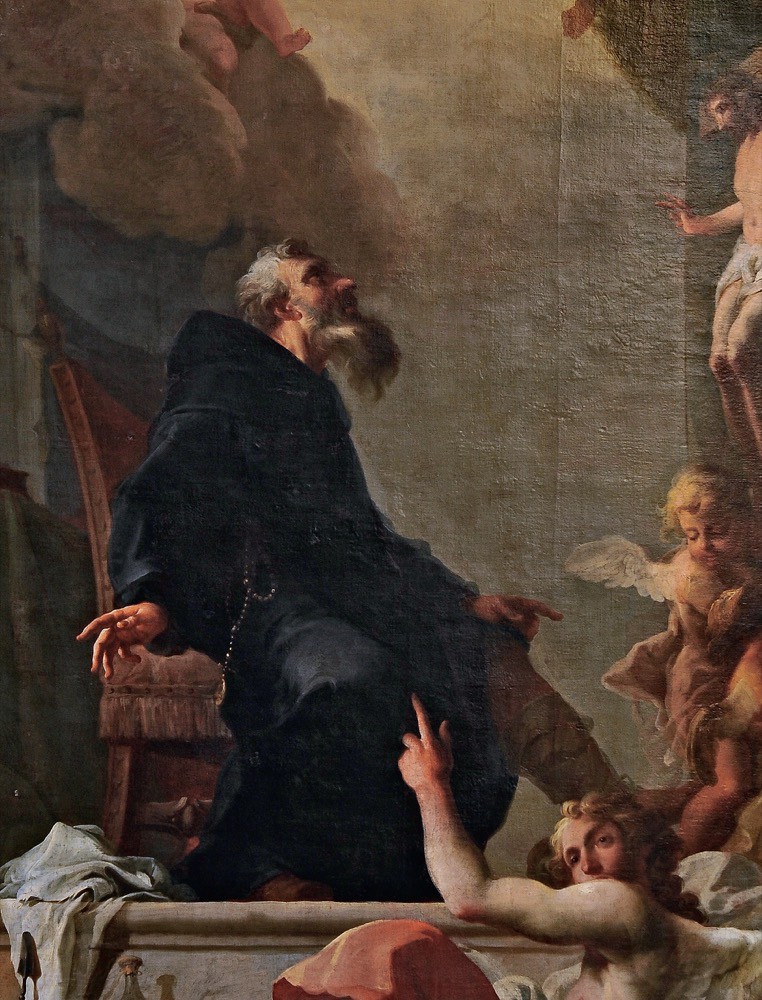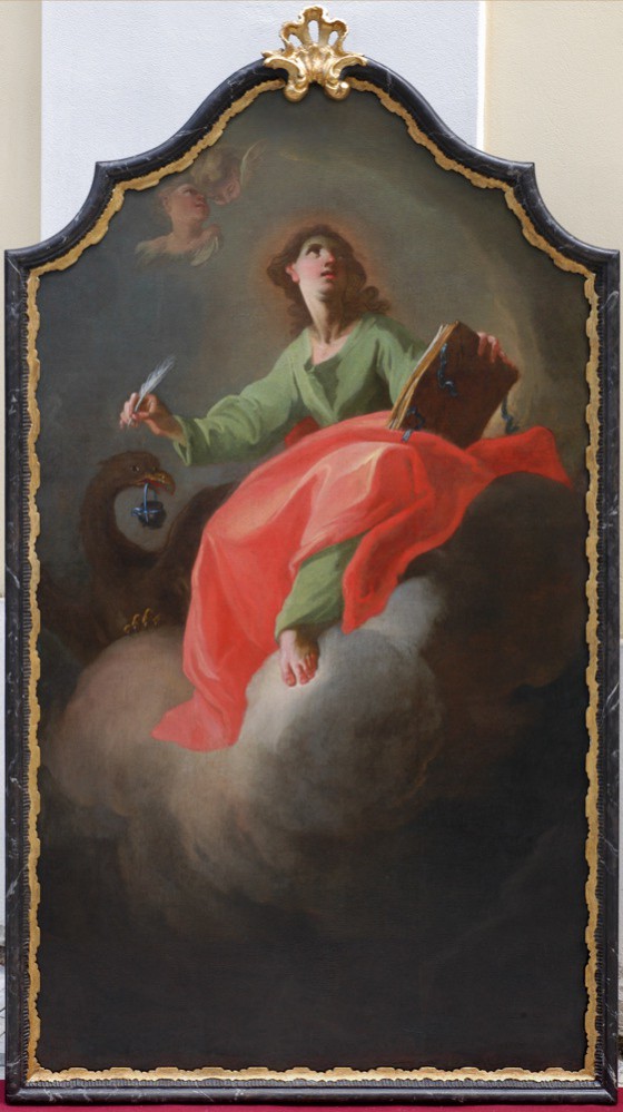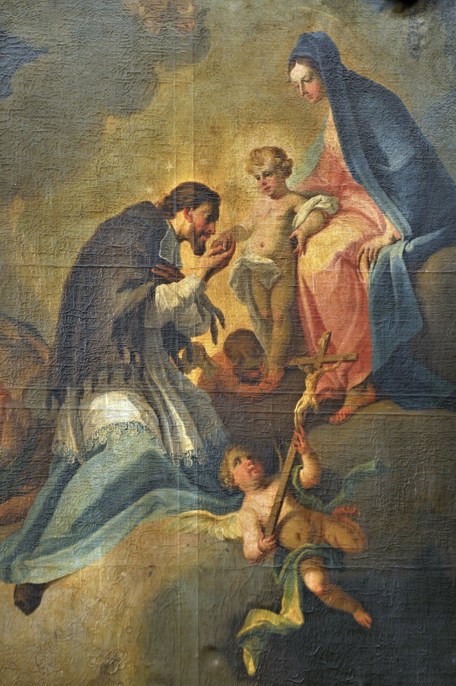 Sv. Bernard z Clairvaux s nástroji Kristova umučení, 1765–1770, Předklášteří u Tišnova, kostel Nanebevzetí Panny Marie, boční oltář sv. Bernarda z Clairvaux