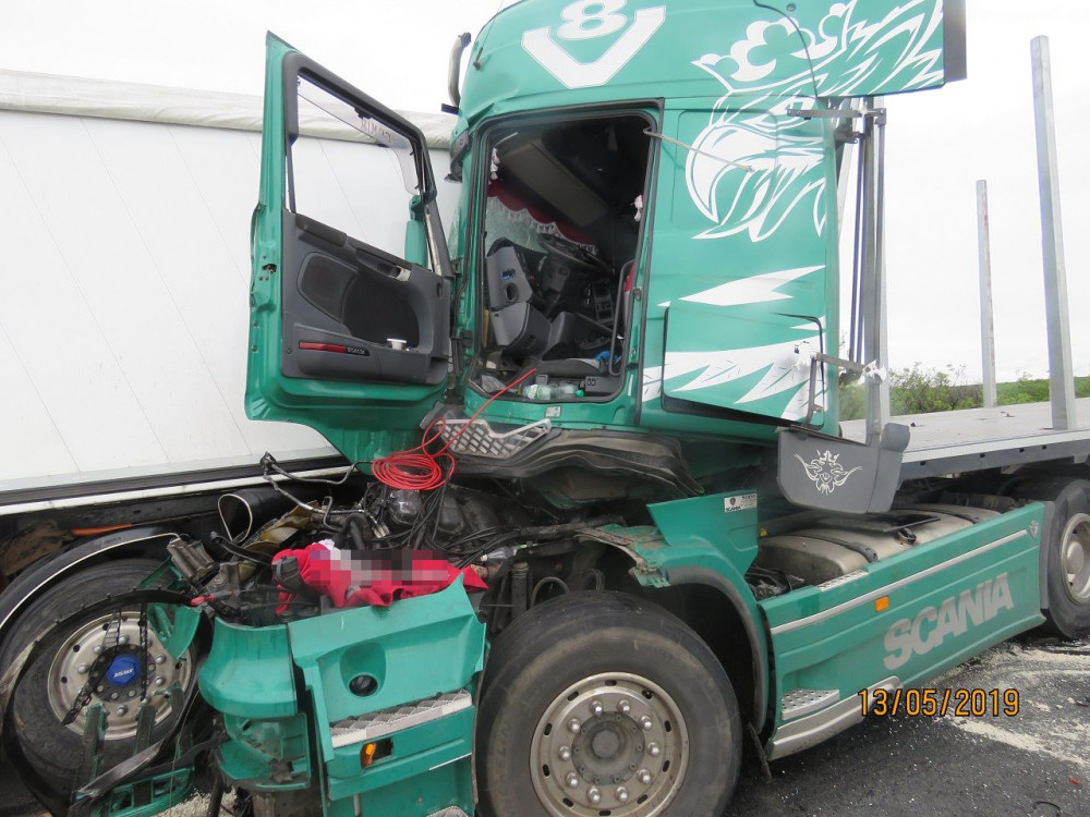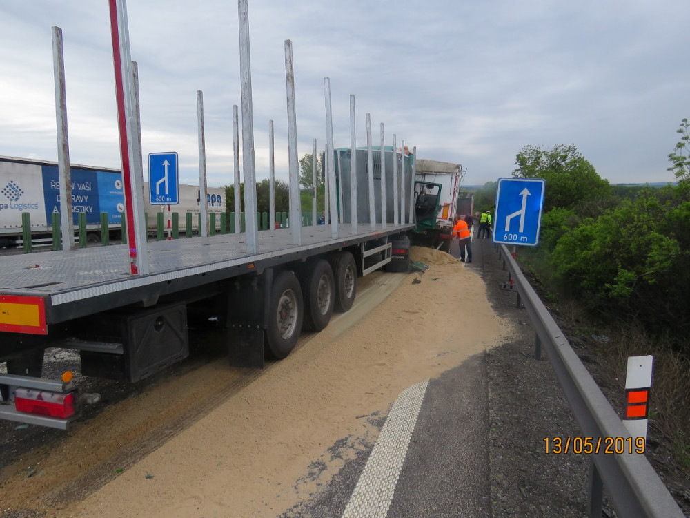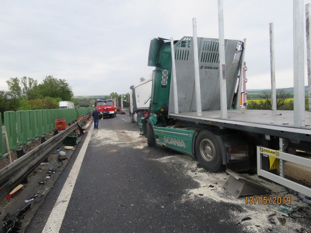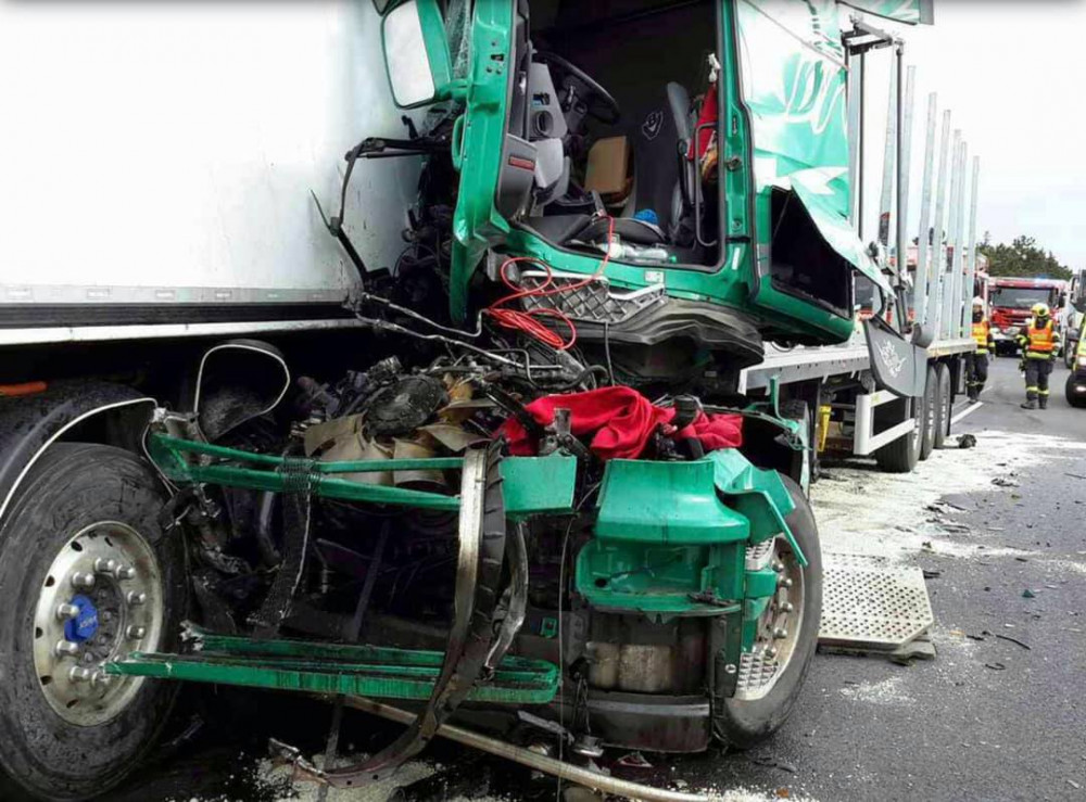 FOTO: Řidič kamionu usnul a zavinil nehodu tří náklaďáků a jednoho osobáku