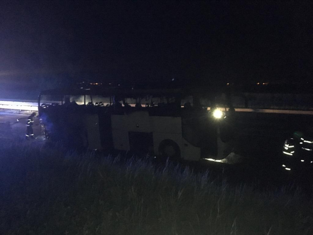 FOTO/VIDEO: Požár autobusu uzavřel dálnici na Prostějov. 49 cestujících bylo evakuováno