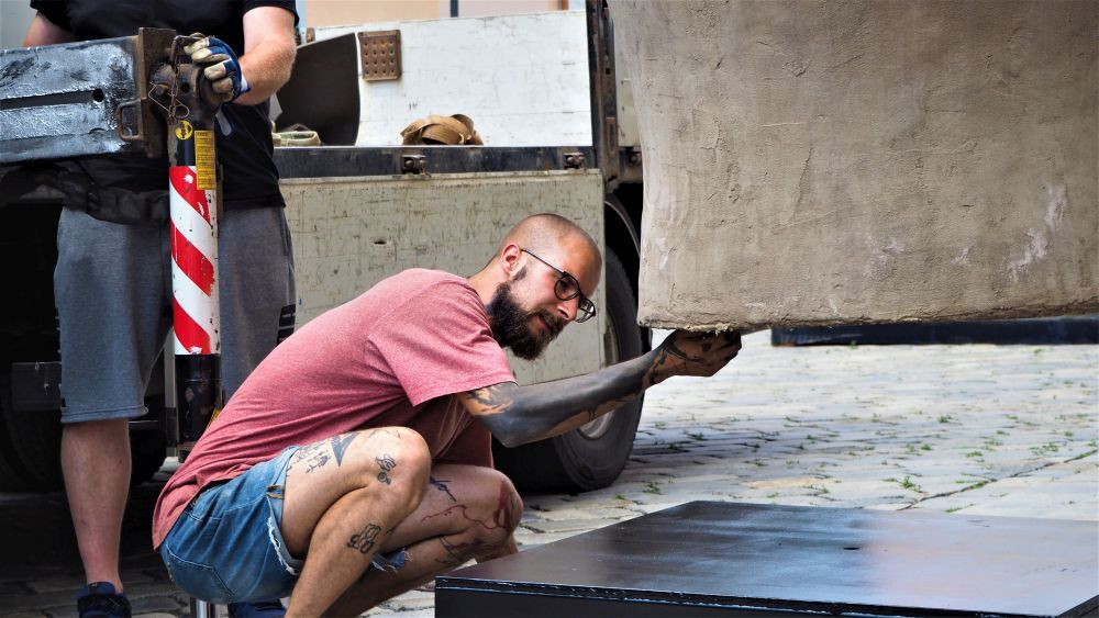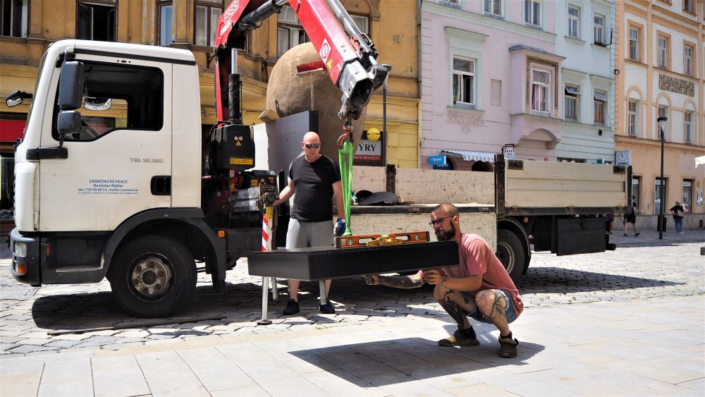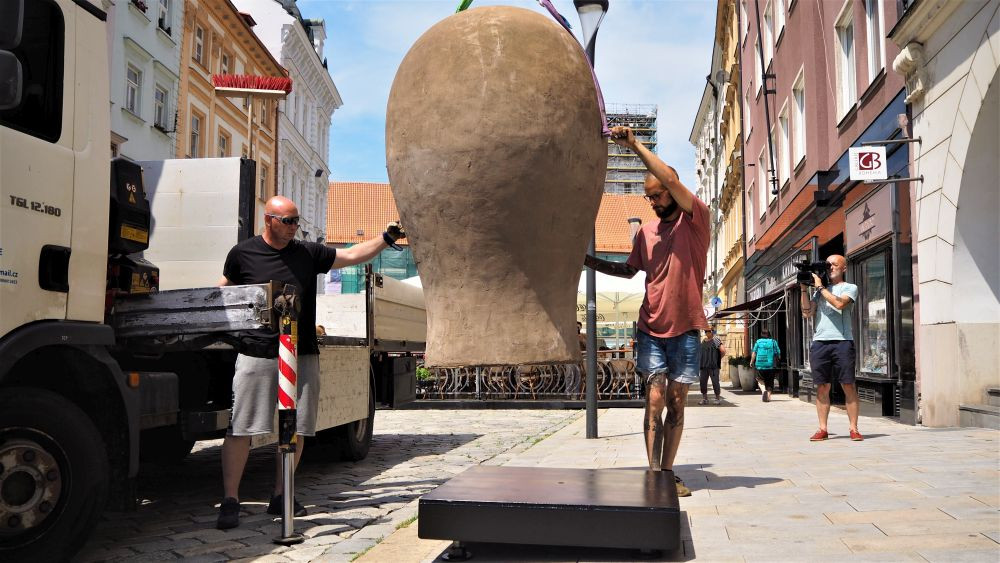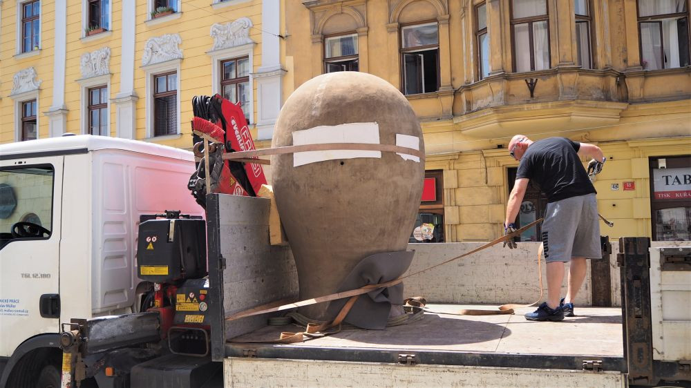 FOTO/VIDEO: Na Dolním náměstí stojí Jedna z velkých hlaviček. Další socha v rámci Sculpture Line