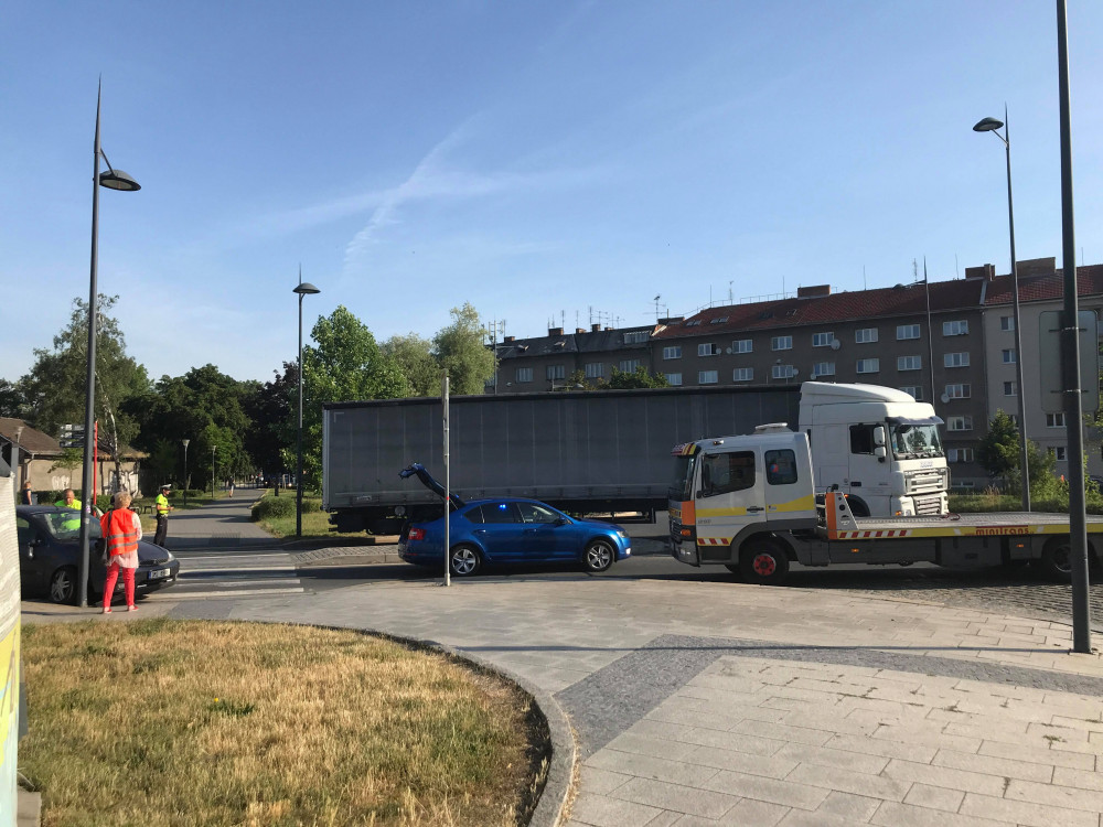 Řidič kamionu, který ráno zablokoval provoz Na střelnici, nedbal pokynů policie