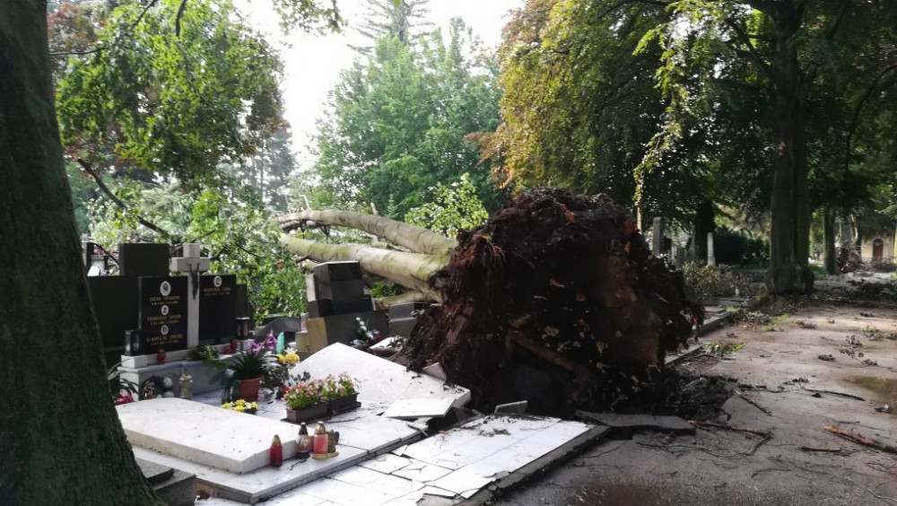 Desítky hrobů na prostějovském hřbitově jsou po včerejší bouřce poničeny