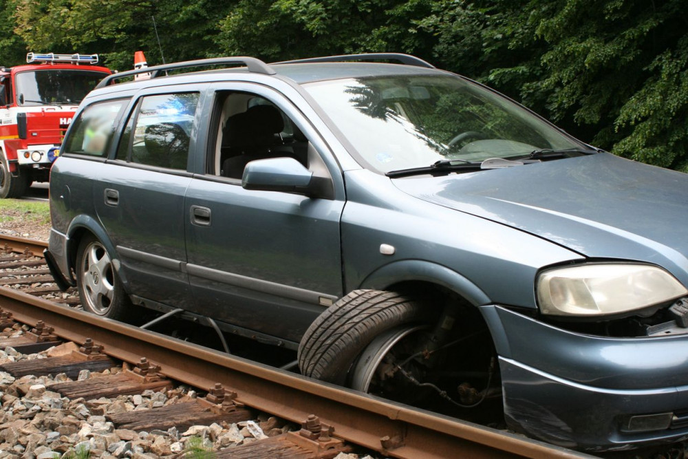 Unavený řidič nezvládl řízení a havaroval v kolejišti. Provoz na trati byl zastaven