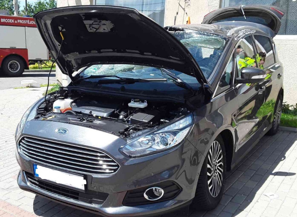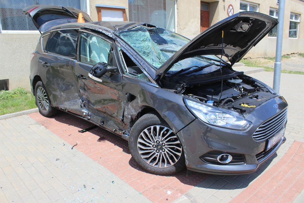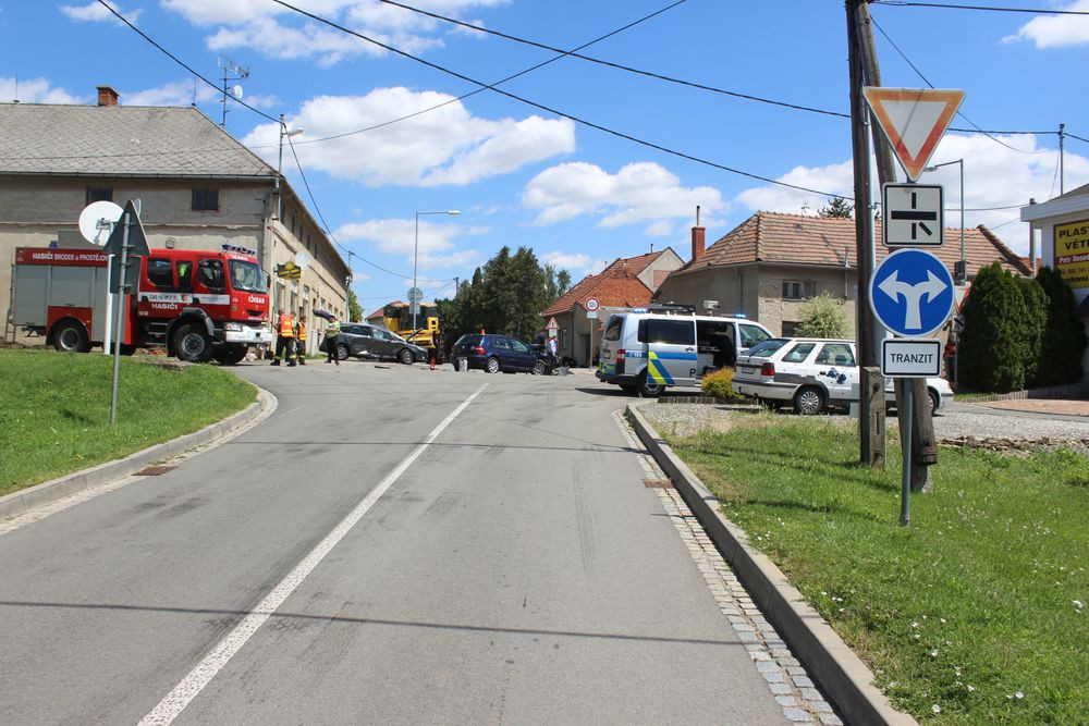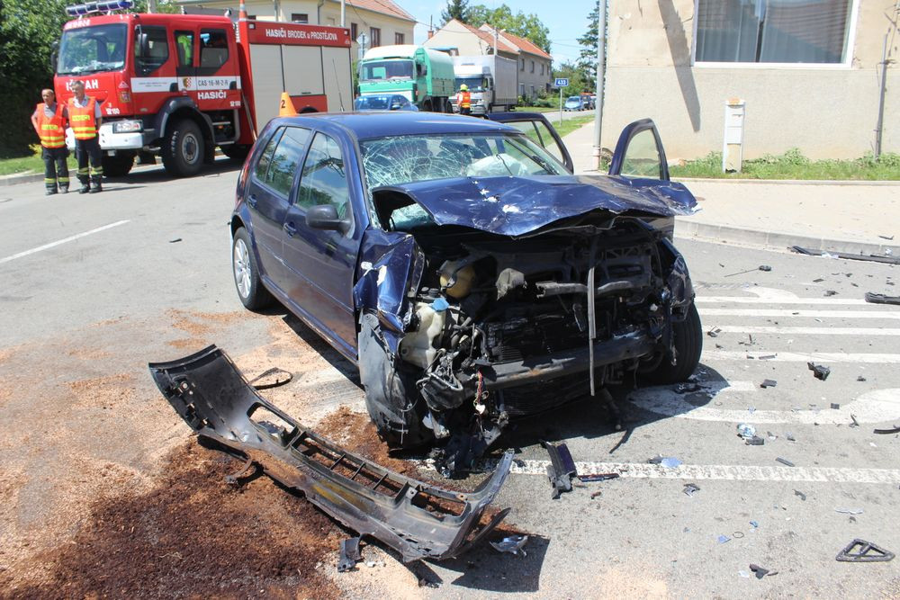 FOTO: Mladík nedal přednost autu na hlavní silnici. Po střetu auto začalo hořet a čtyři lidé se zranili