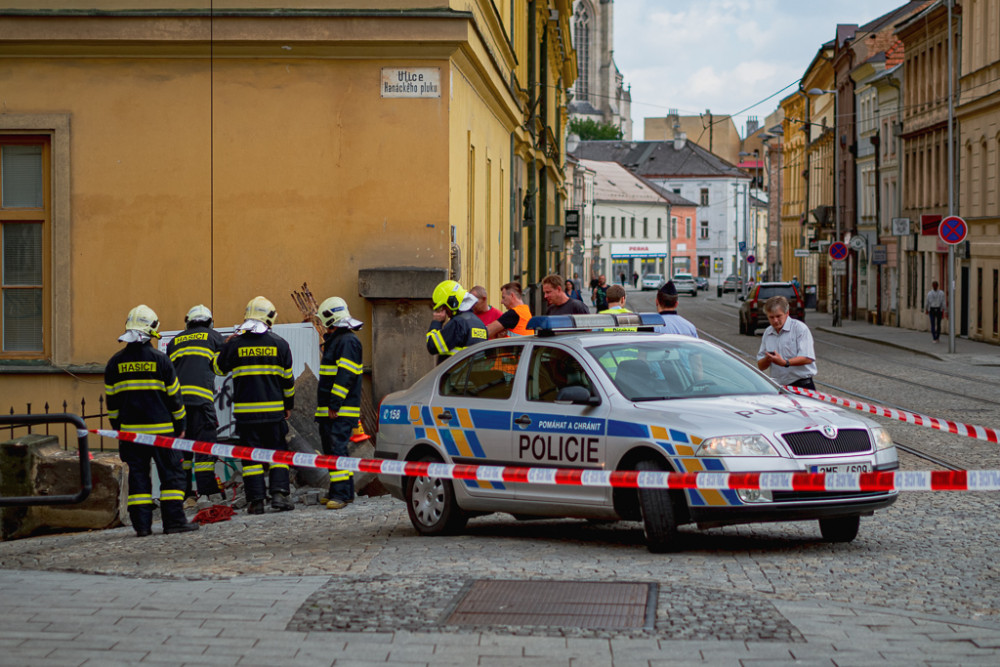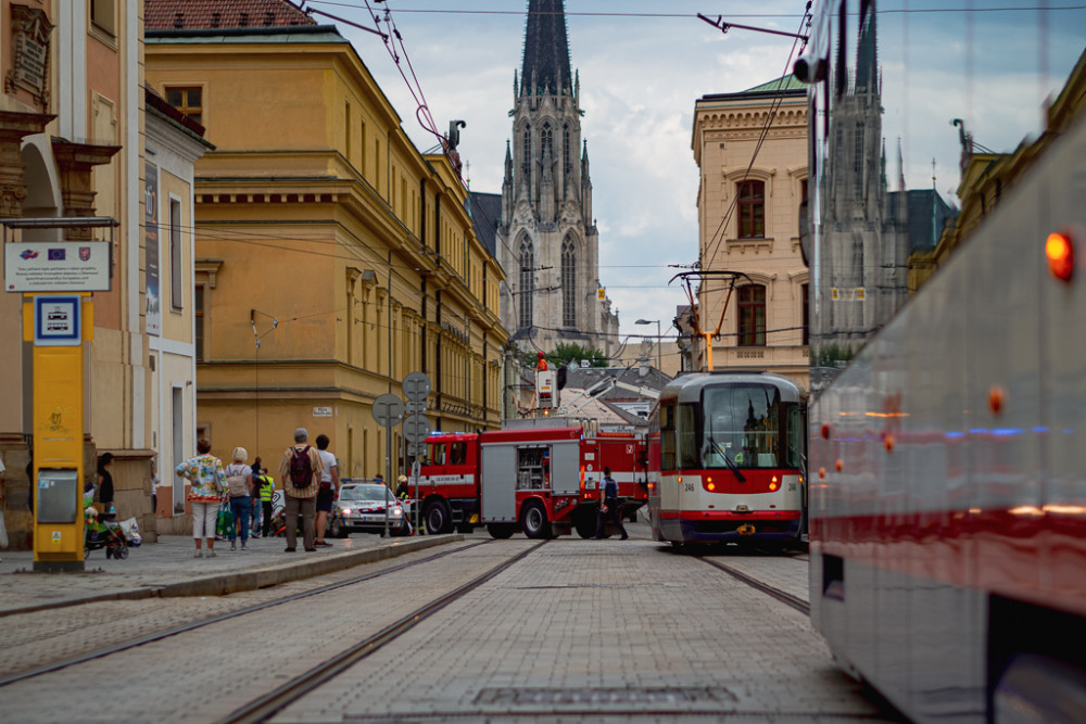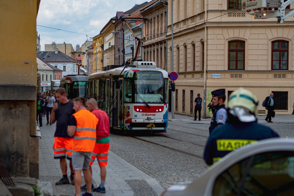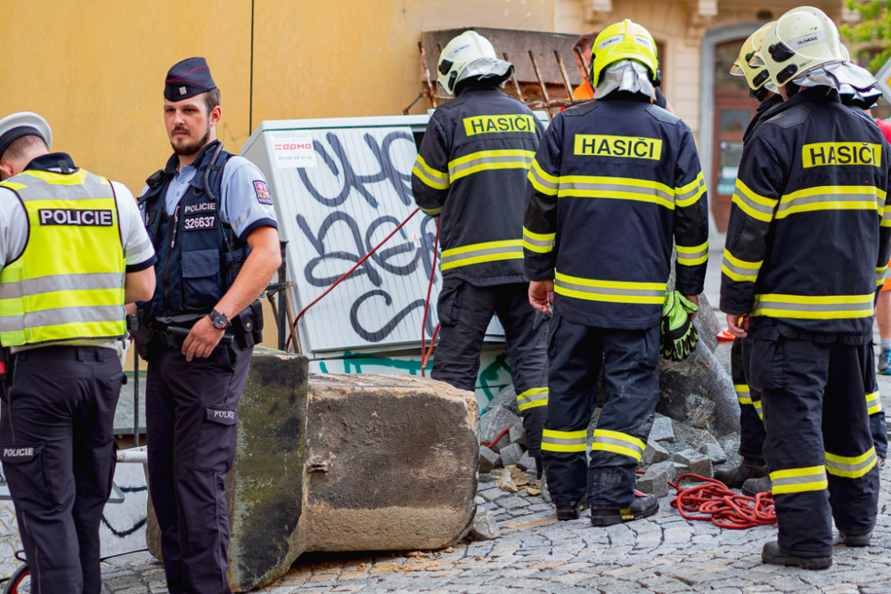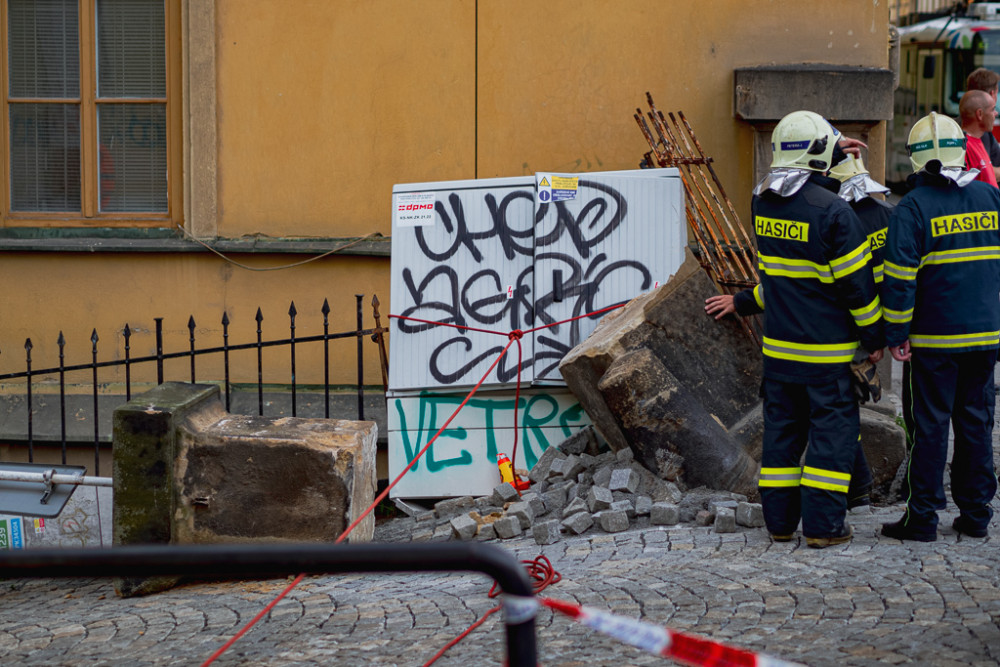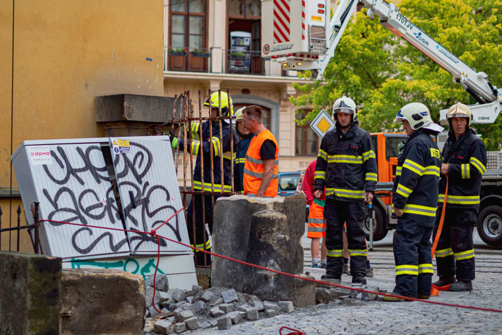 FOTO/VIDEO: Náklaďák u muzea poničil pískovcový sloup a vyvrátil rozvodnou skříň. Řidiče chytili až na Wellnerově ulici