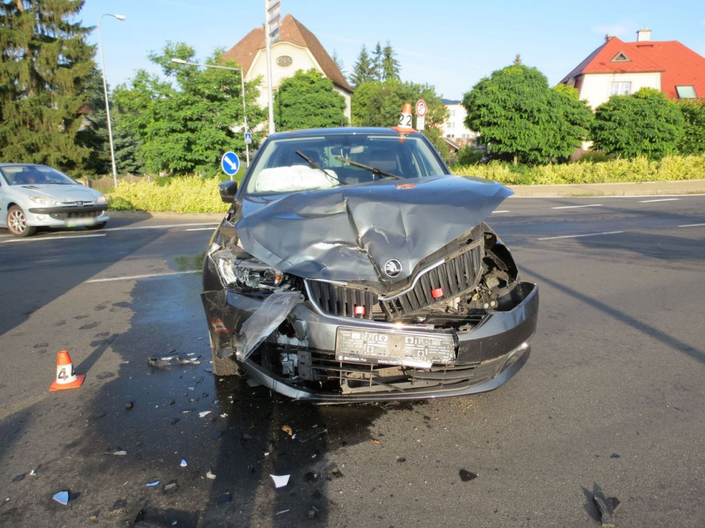 Mladý řidič nedal přednost řidičce, která jela po hlavní silnici. Došlo k nehodě a žena utrpěla zranění