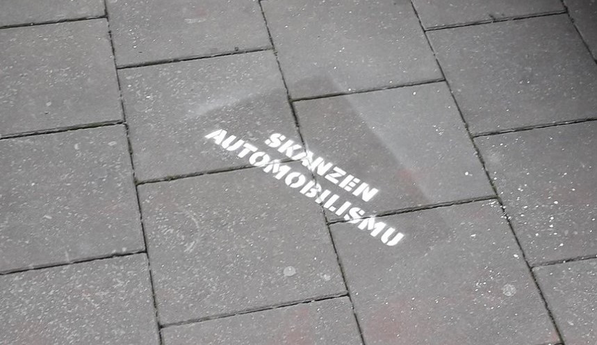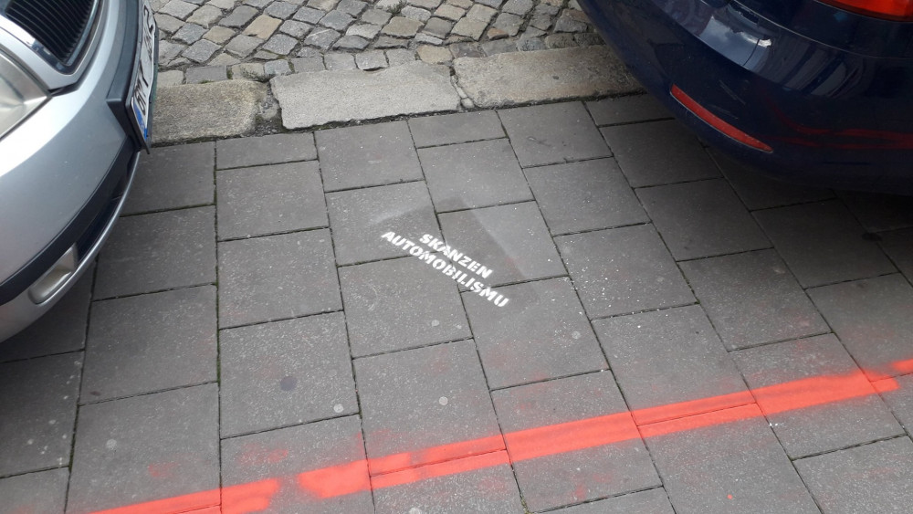 FOTO: Opoziční politici posprejovali chodník. Podle policie jim hrozí až rok za mřížemi